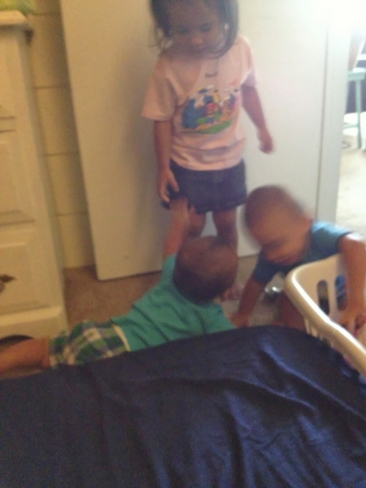 Natalie loves playing with her brothers on the mattress in their bedroom ( I am sleeping in their bedroom trying to help Nells feel comfortable sleeping in her room and in her bed)