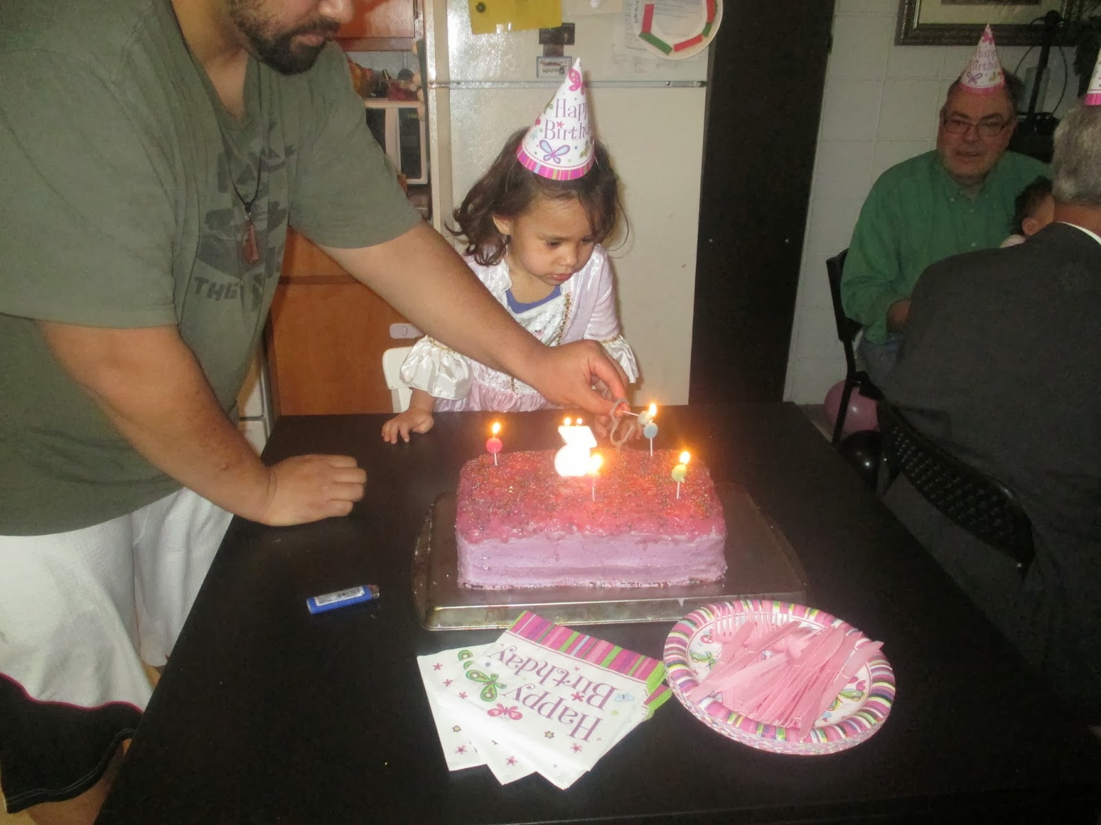 Natalies pink princess birthday party with both grandmas and grandpas and Aunty Tash